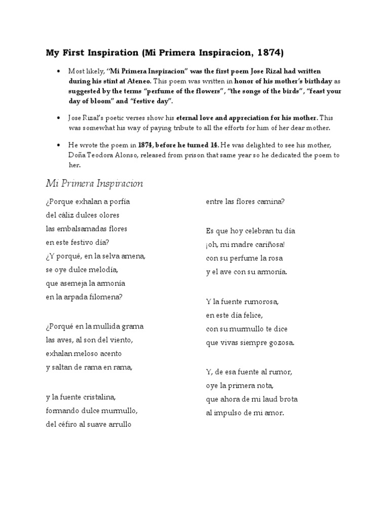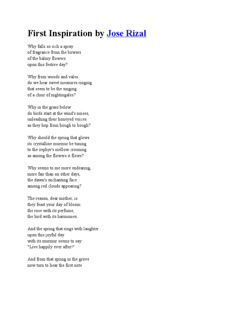 Rims and tires for 2018 dodge ram 1500. Ole mathiesen online shop. Most likely Mi Primera Inspiracion was the first poem Jose Rizal had written during his stint at Ateneo.