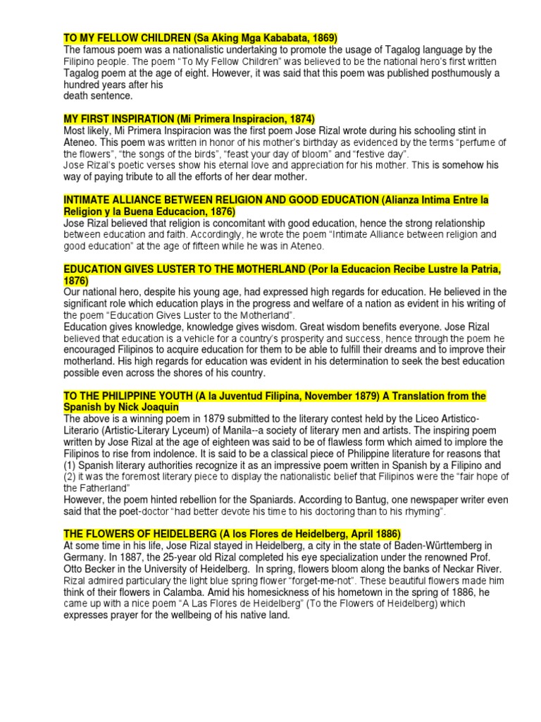 0 Jose Rizals Poems The Contents Are A Collection Of Rizal S Life Works And Writings Throughout Studocu